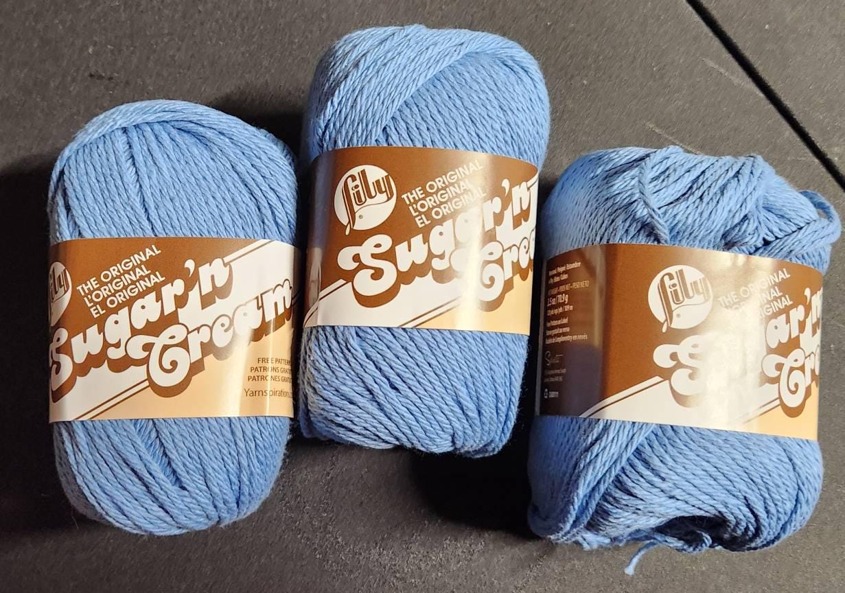 CHECK XMAS 2025 3 Skeins "Lt Blue" The Original Sugar N Cream Cotton Yarn. Lily® Sugar'n Cream® Yarn is made in Canada from 100% USA grown cotton which is dyed and spun into a wide variety of colorways and skein sizes. This yarn is known for its exceptional quality, softness, and large variety of colors. This classic worsted weight cotton yarn is recognized for working up super absorbent dishcloths, home decor, summer knitwear and craft projects.