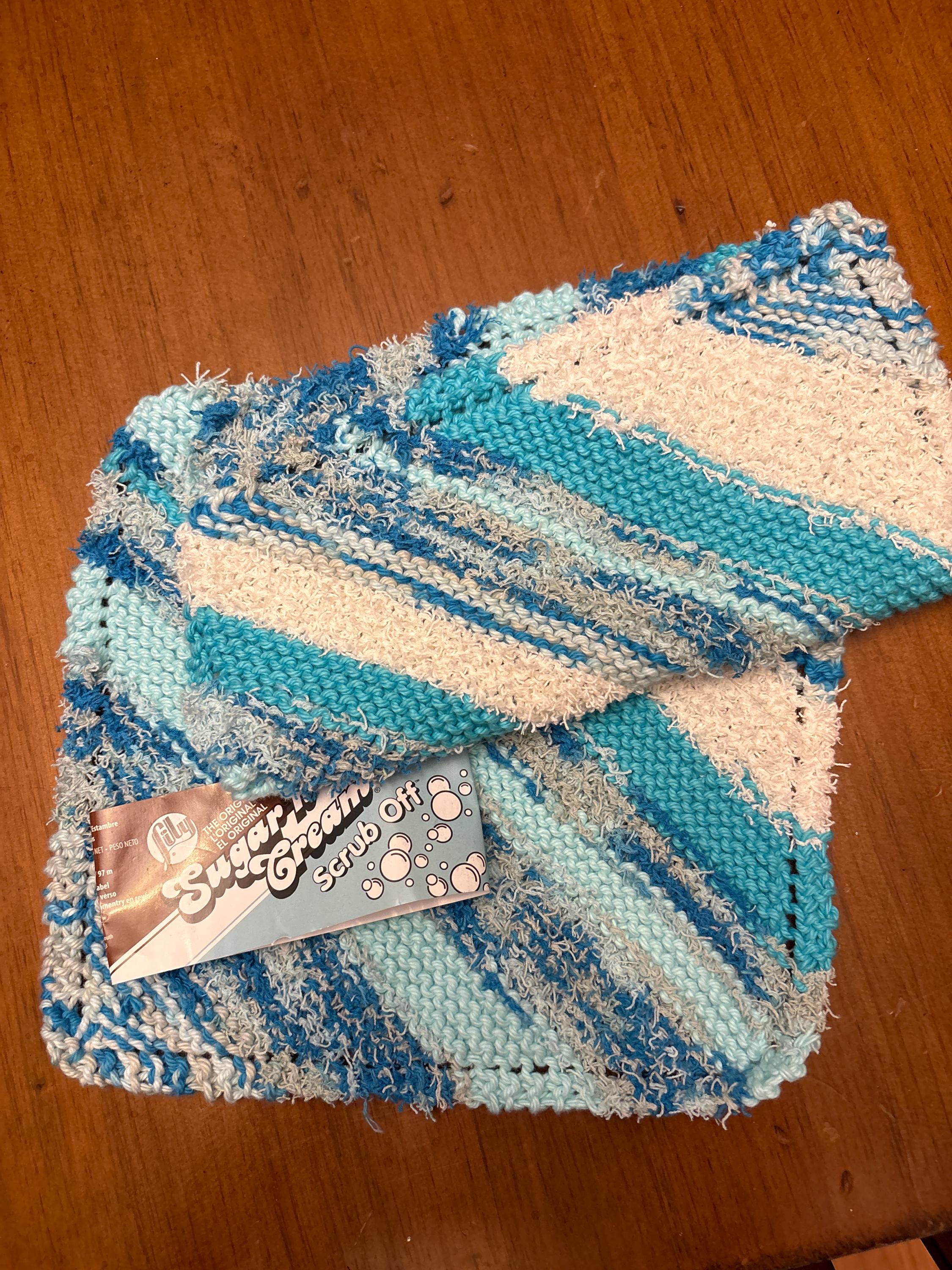 3 pack "Spring Blue" Scrub Off by Lily - The Original Sugar N Cream Cotton Yarn. This textured 100% cotton Lily® Sugar'n Cream® Yarn will help you tackle tough kitchen messes and more. This yarn is super absorbent and has alternates sections of scouring textures and Lily’s classic cotton for the best of both worlds in kitchen cleaning.